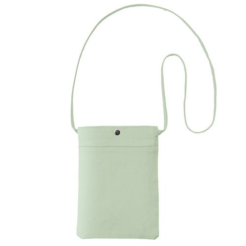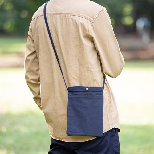 10オンスと手頃に厚手で耐久性にも優れた縦長タイプのサコッシュです。外側にあるポケットはスマートフォンを入れるのにぴったり。3色展開の中から、名入れデザインに合わせてお選び下さい。