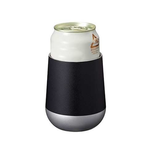 あえてざらっとした手触りの塗装を表面に施したステンレス素材と、アルミ缶がすっぽり収まるサイズ感が特徴のタンブラー。
