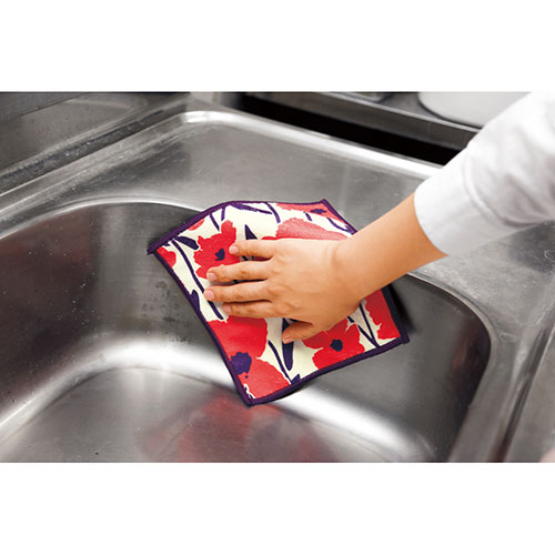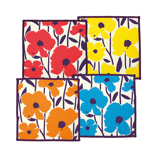 カラフルな北欧風花柄でリサイクルPETを使ったお掃除クロス。カラーが異なる4枚をギフトに最適な化粧箱に収納。吸水速乾性の生地&極細繊維で様々な場所のお掃除に使えてとても便利です。