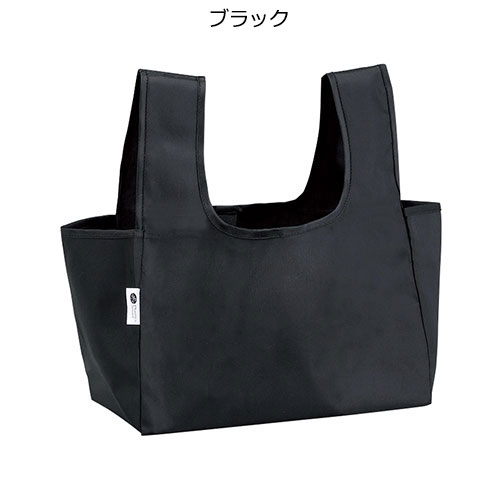 マチが広いのでコンビニ弁当を平置きできる。再生ペットボトルを使ったポリエステルのエコバッグ。手持ち&腕掛けができるコンパクトなサイズ感でワンマイルのお出掛けにぴったりです。