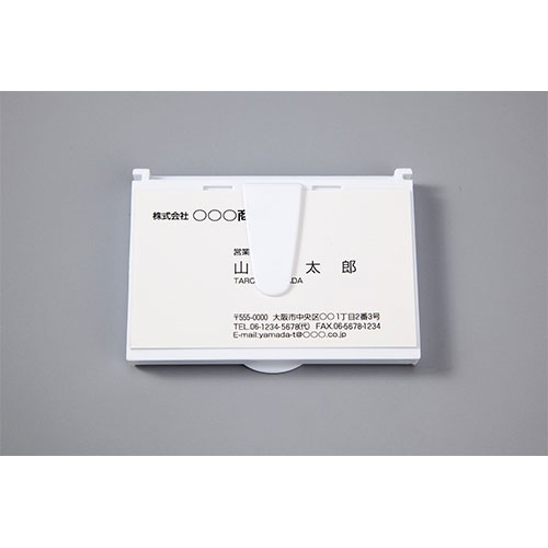 7色の小ふせんとミニボールペンをケースに収納。ケース裏面に挨拶用の名刺が挟めるホルダーが付いた、ノベルティに最適な商品です。ケースの蓋と中央正面部分にしっかり名入れができます。