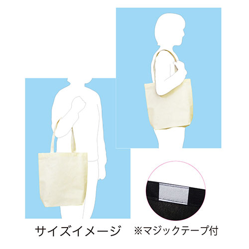 底が広がり書類・ペットボトル・折り畳み傘も収納できる柔らかくて丈夫な不織布トートバッグのMサイズ。全6色のカラー展開で、飽きのこないシンプルなデザインはノベルティとして重宝します。